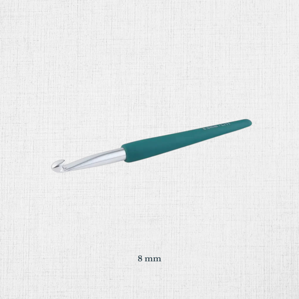 Les crochets en aluminium Waves de Knit Pro sont lisses, élégants et faciles à utiliser. Chaque taille de crochet est codée par couleur et dotée d’une poignée souple et confortable.