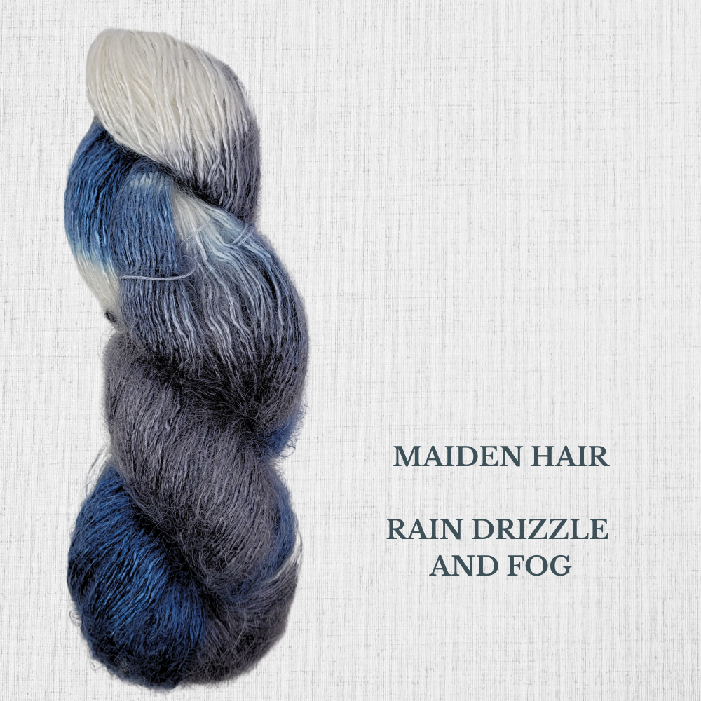 Maiden Hair : 67 % Soie, 23 % Fine Kid Mohair, 10 % Nylon (100 gr / 300 m.)