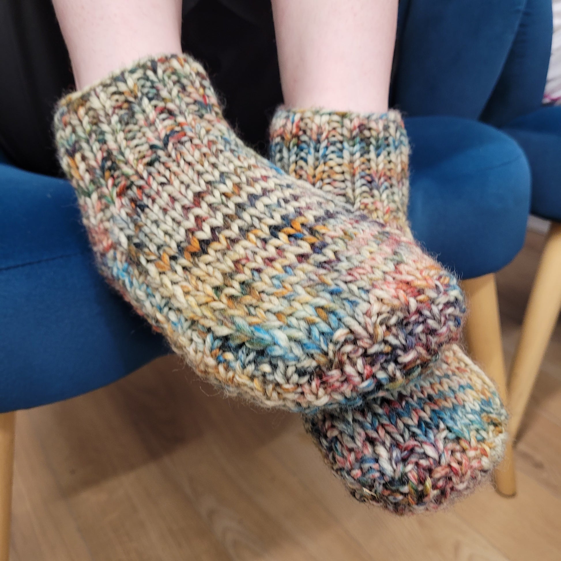 Chaque étape du tutoriel est bien expliqué, j'ai pu ainsi tricoter de jolies pantoufles en peu de temps. La Heirloom Organic est un excellent choix de fil. J'ai offert en cadeau ma première paire et la prochaine paire sera pour moi.