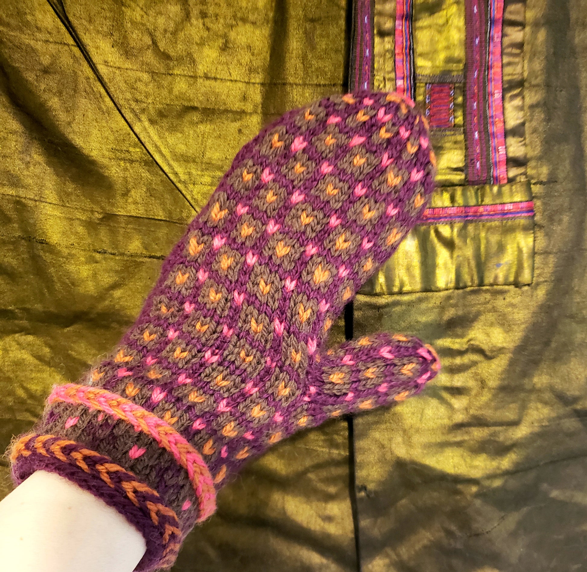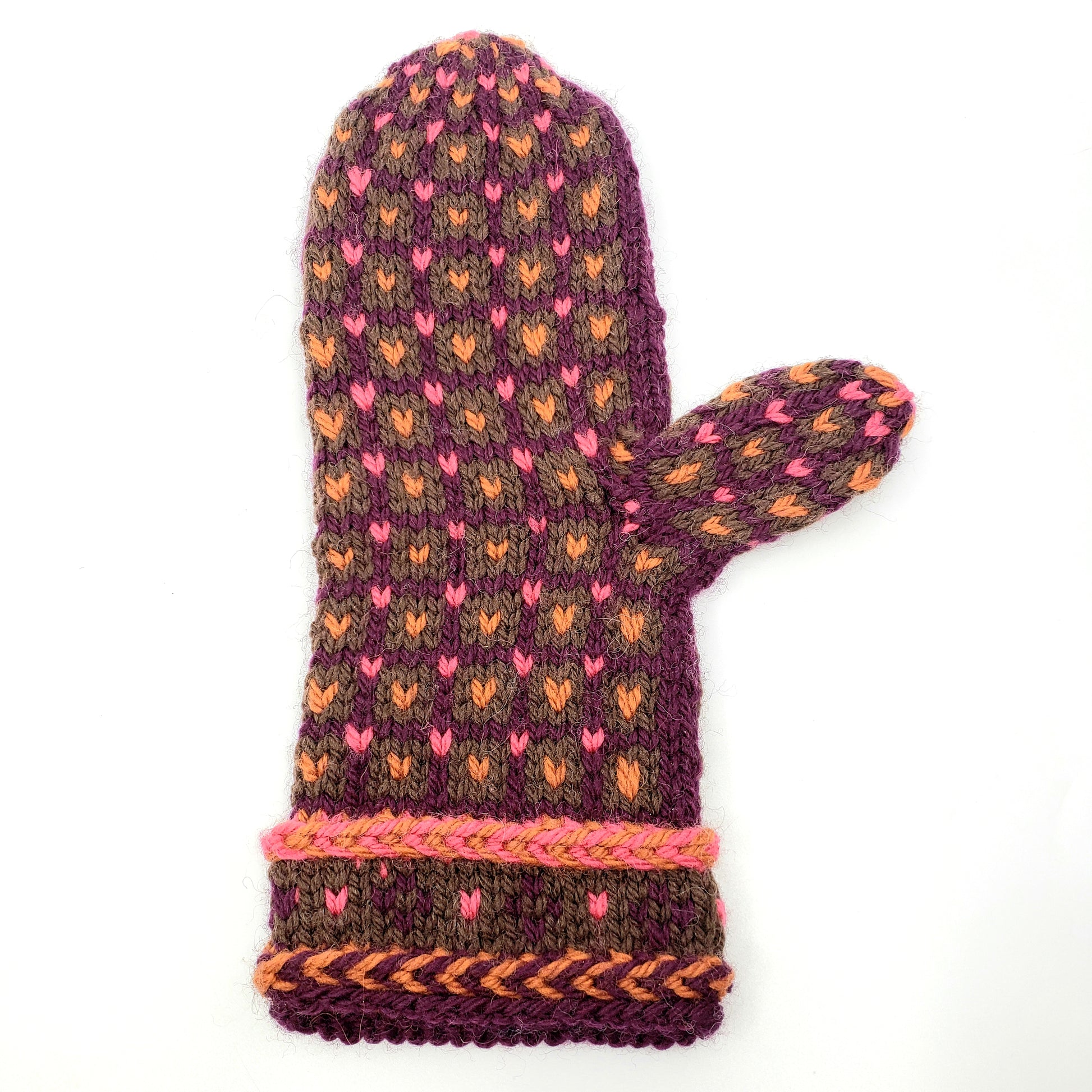 Single (adult woman). Measurements of the blocked mitten: 25 cm in height and 22 cm in circumference