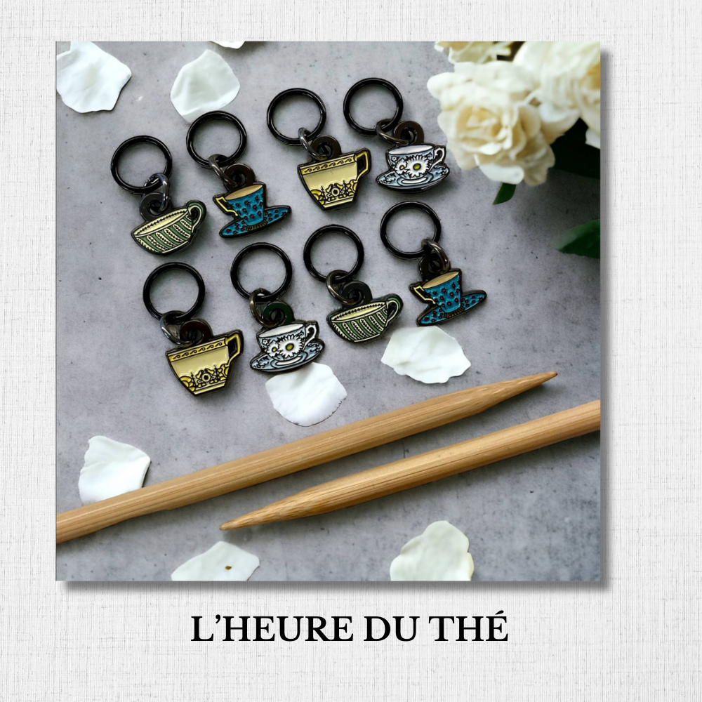 Chaque set comprend 8 anneaux repères émaillés tels que sur les photos. Ils viennent dans un joli sachet illustré.