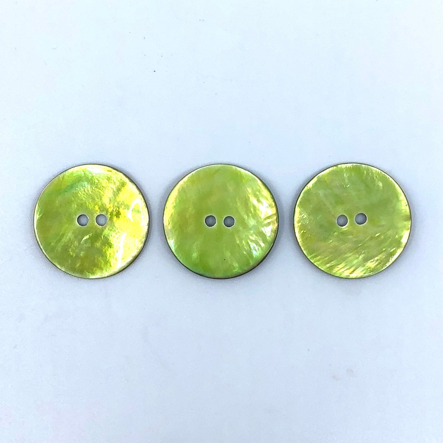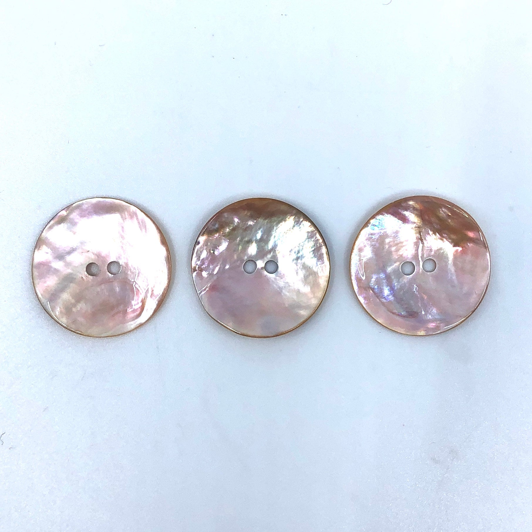 Ces boutons sont produits à partir de l'huître Akoya. Ils sont recouverts d'un vernis coloré que le lustre de la nacre vient réhausser.