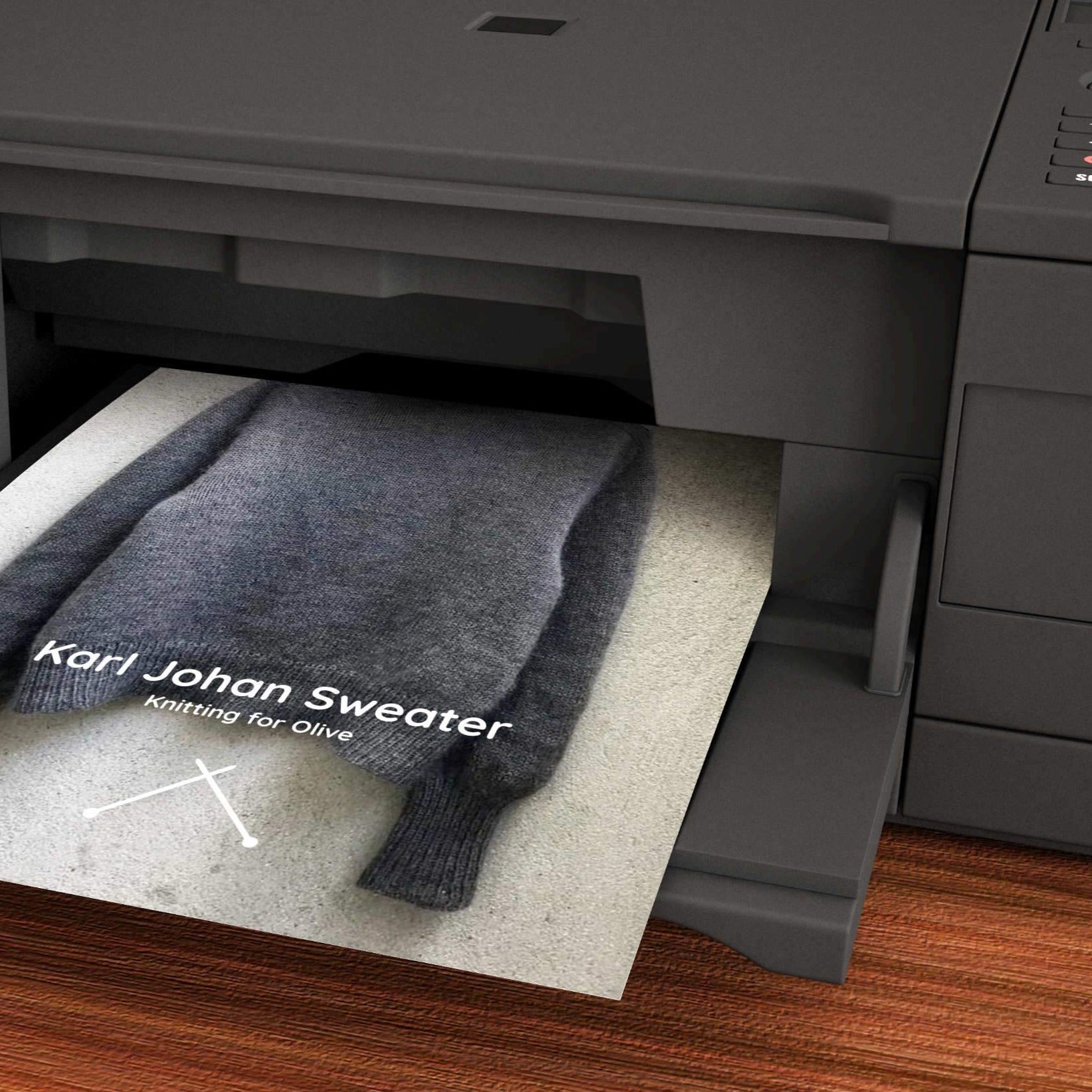 Les tailles proposées pour ce patron sont inclusives. Ce pull est dessiné pour être porté avec une aisance positive de 0-10 cm [0-4]’’.