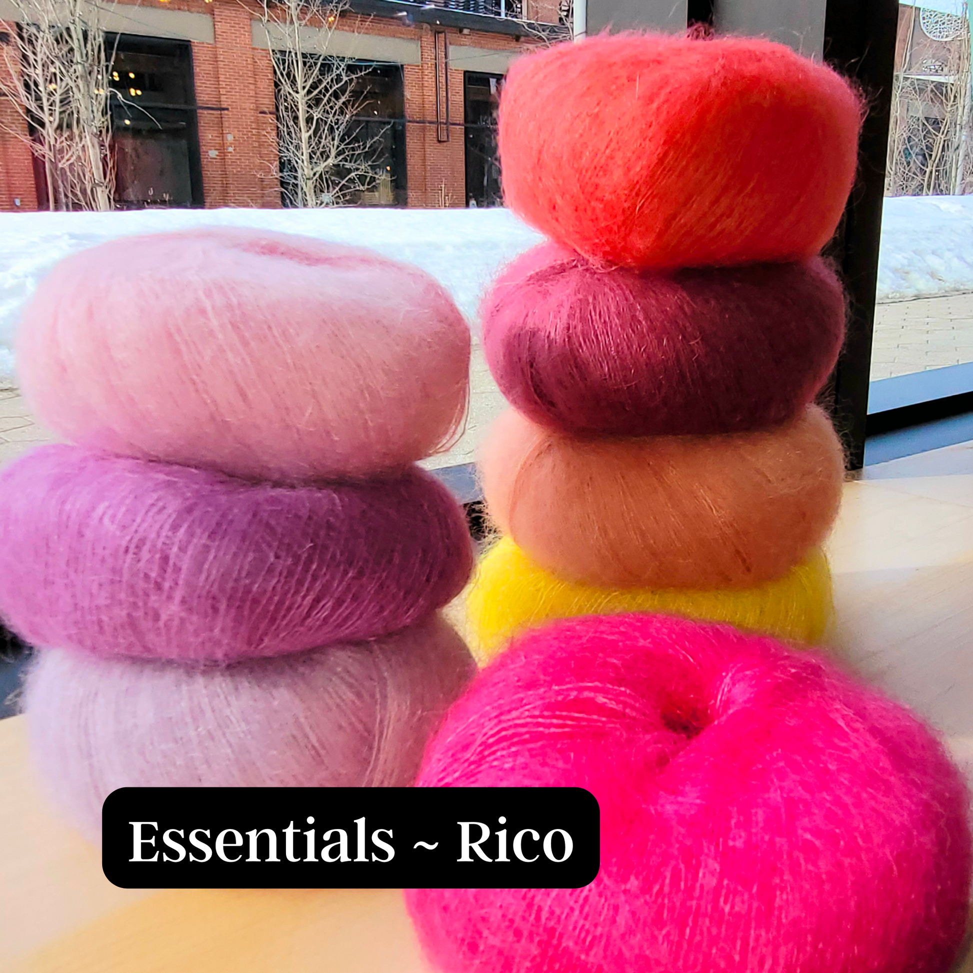 - Essentials superkid mohair par Rico (70 % mohair, 30 % soie - 200 m / 25 gr) - 18$ la pelote de 25 gr.