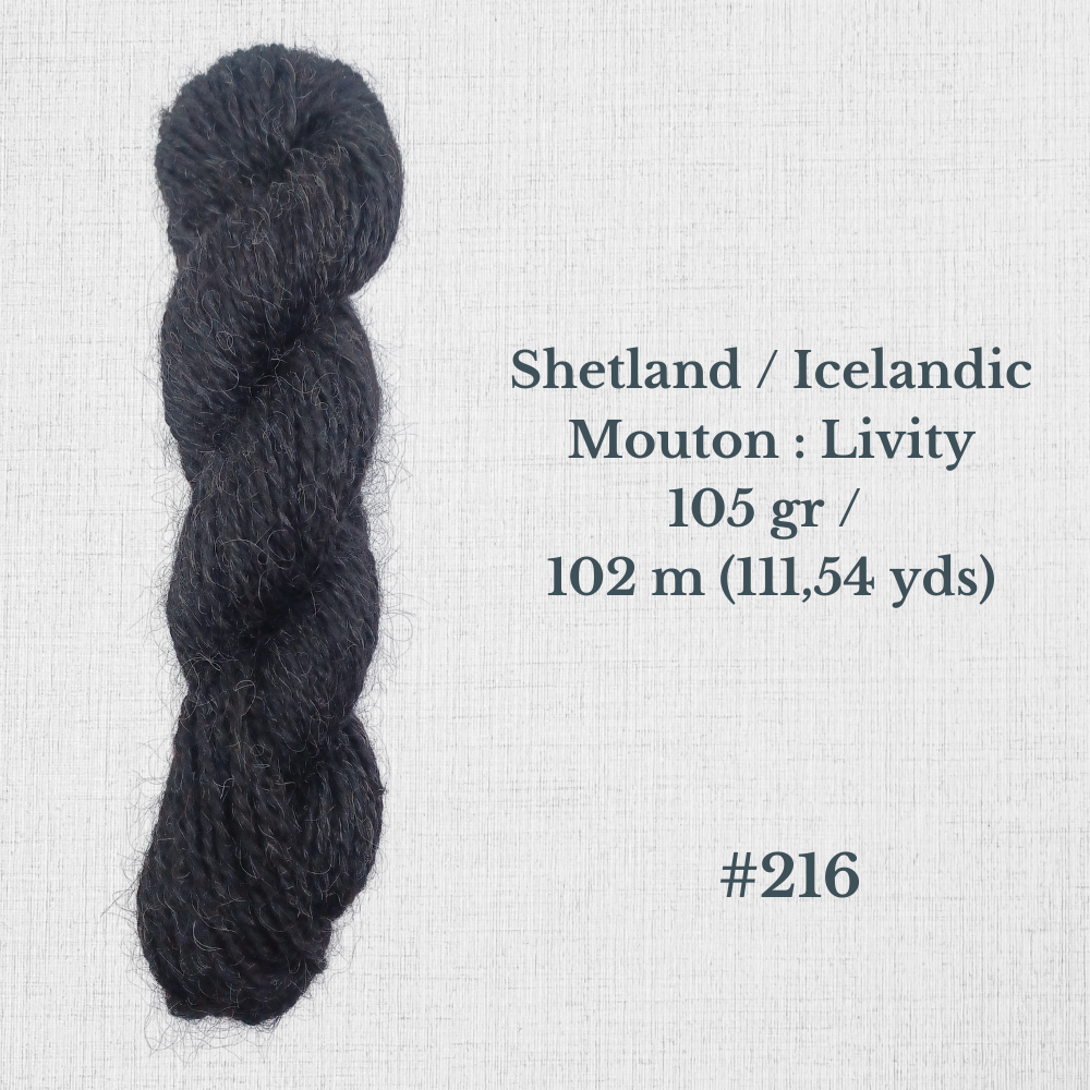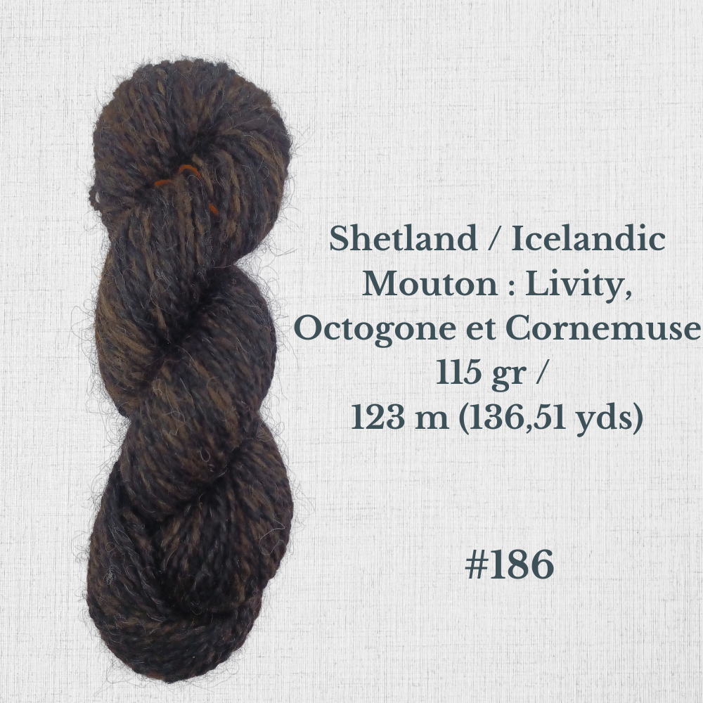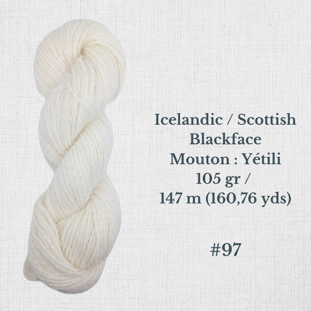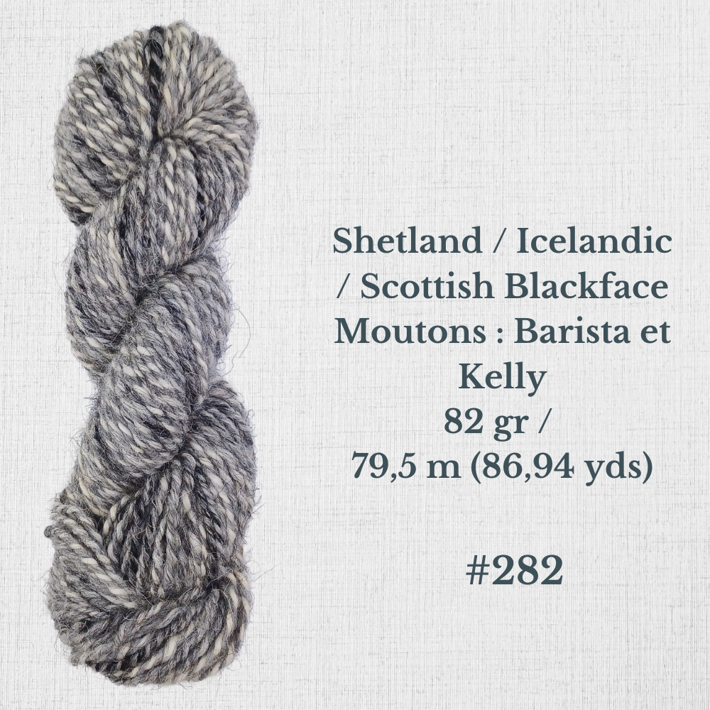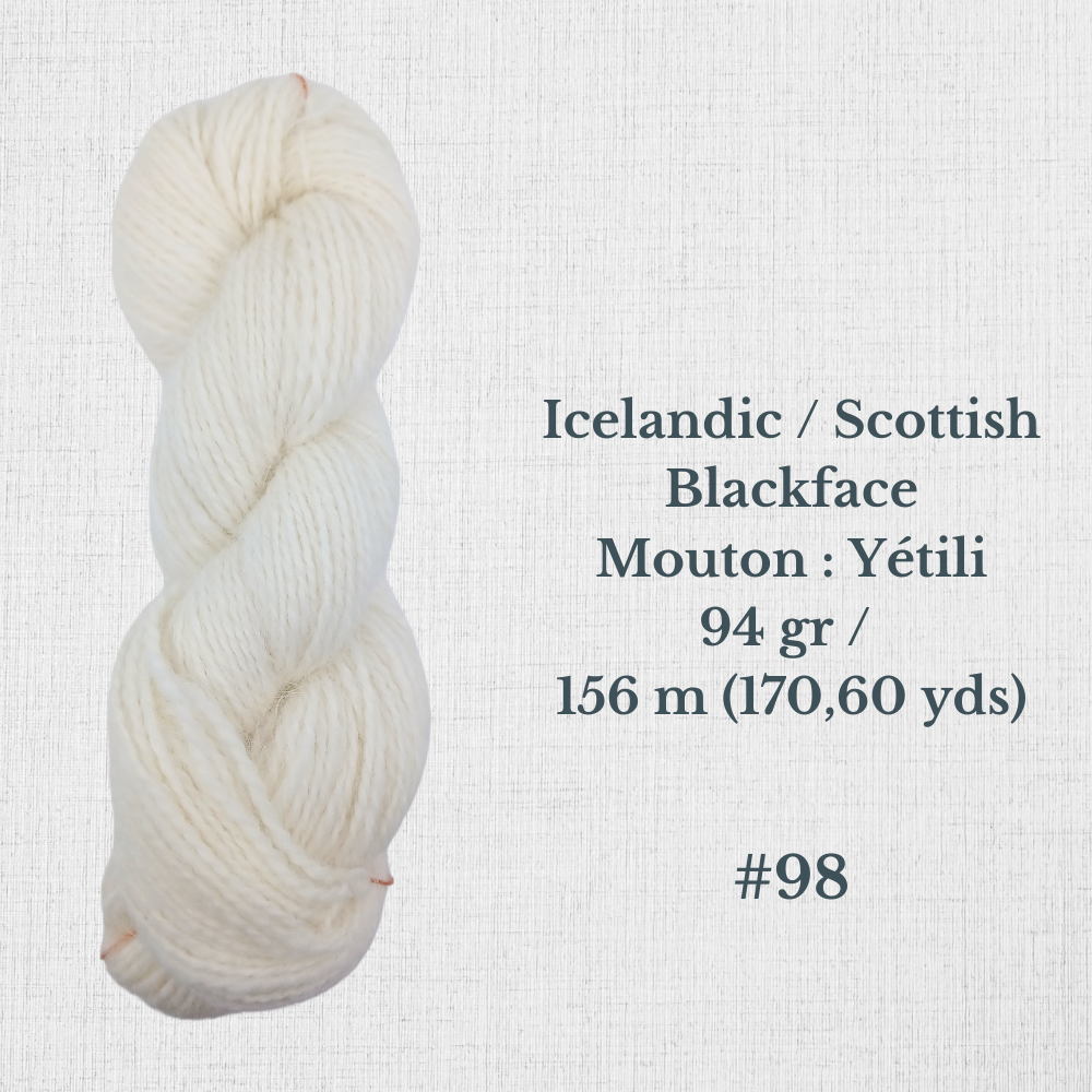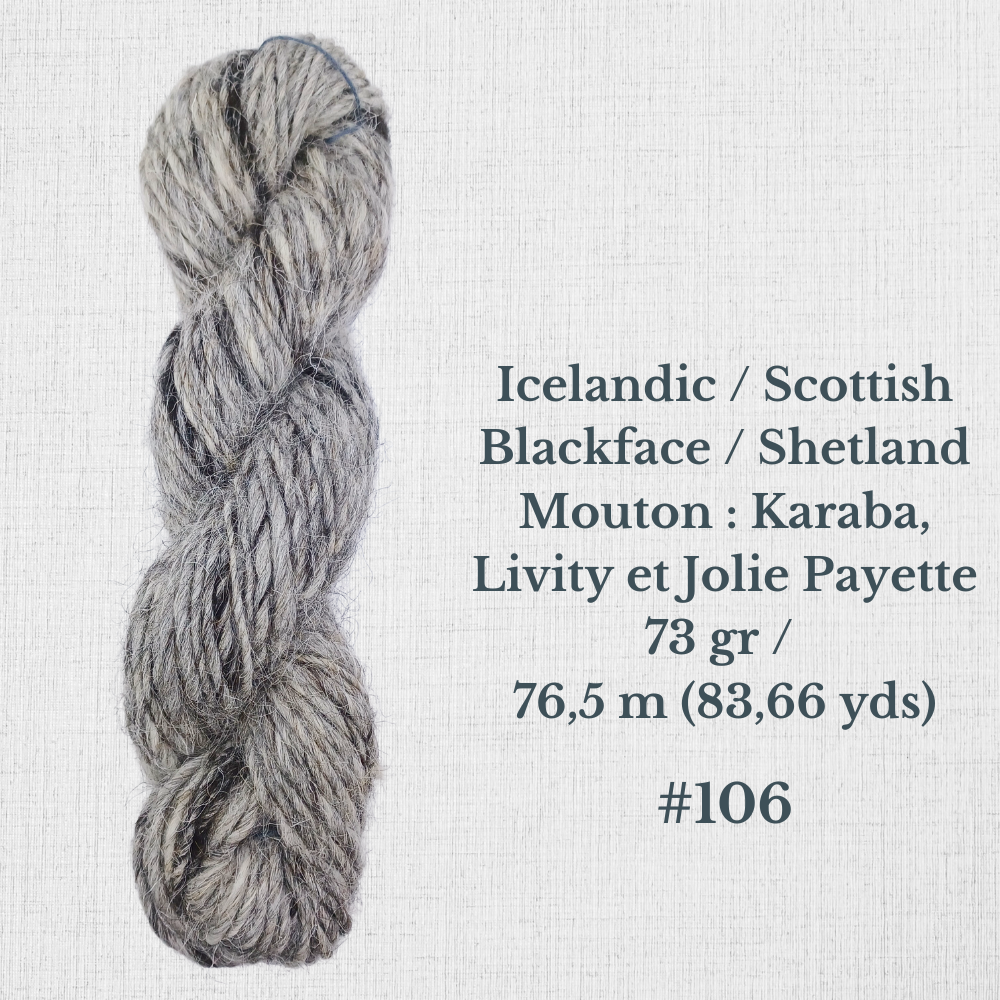 Composition : Laine Shetland, Scottish Blackface et/ou Icelandic filée à la main |