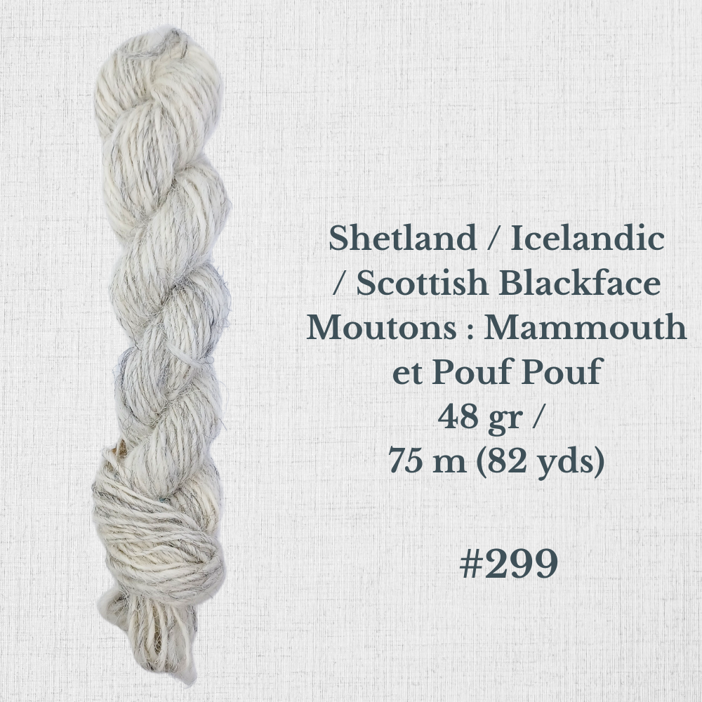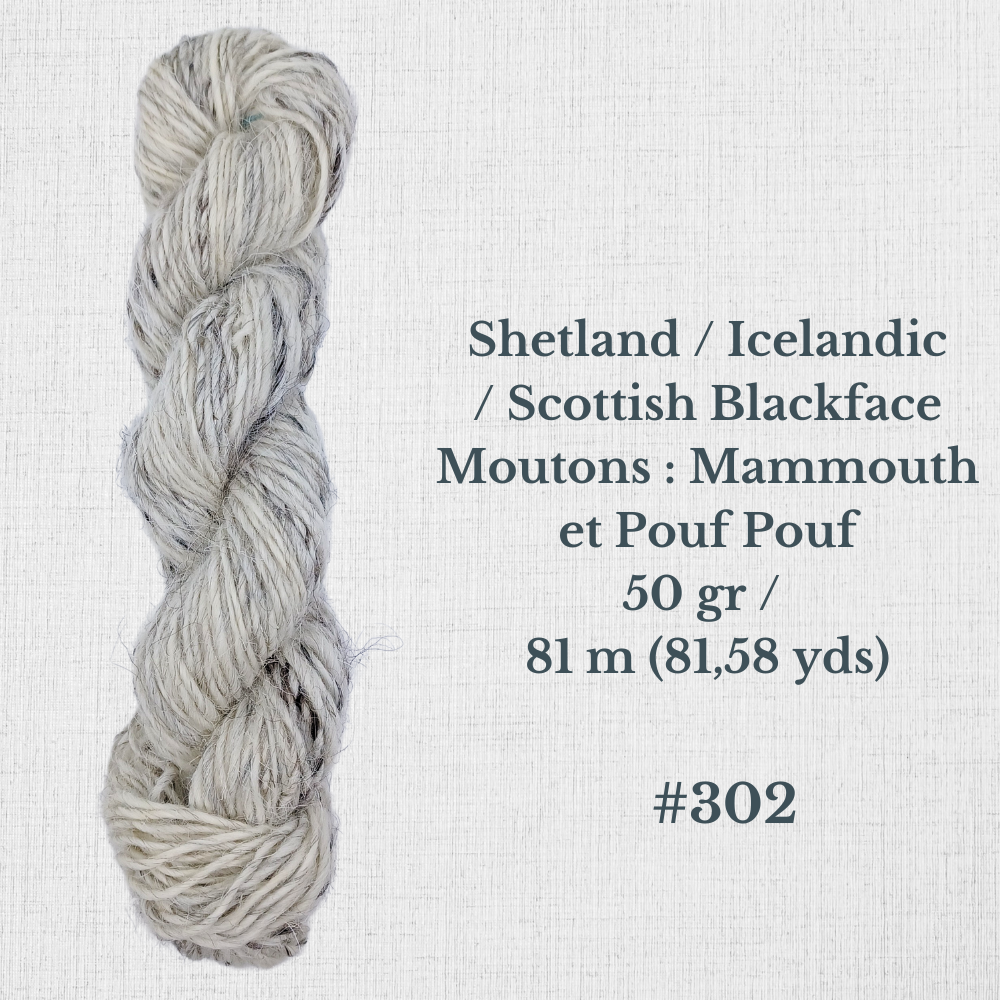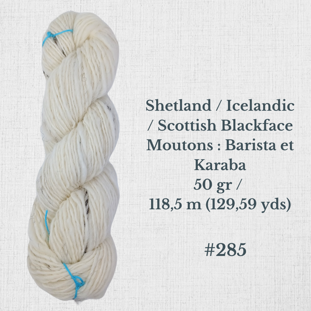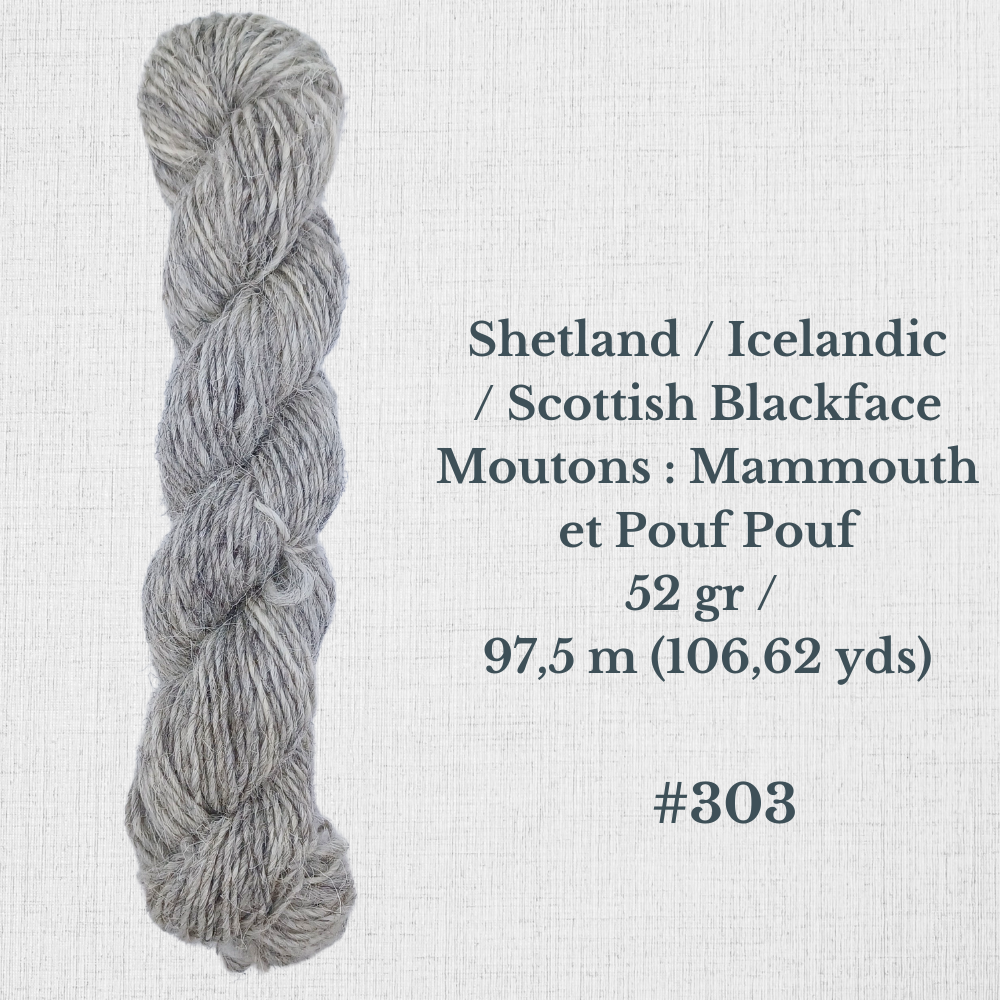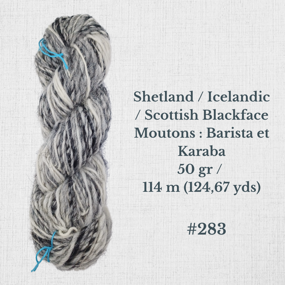 Composition : Laine Shetland, Scottish Blackface et/ou Icelandic filée à la main |