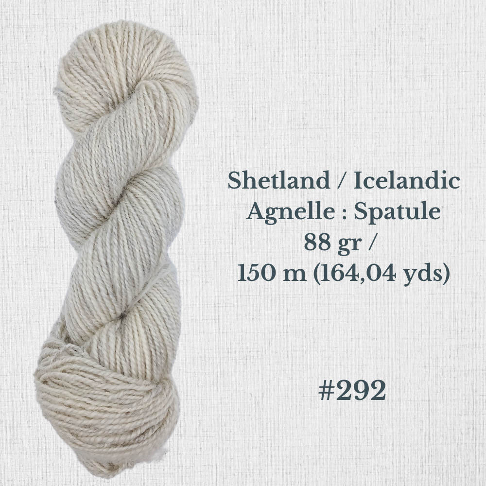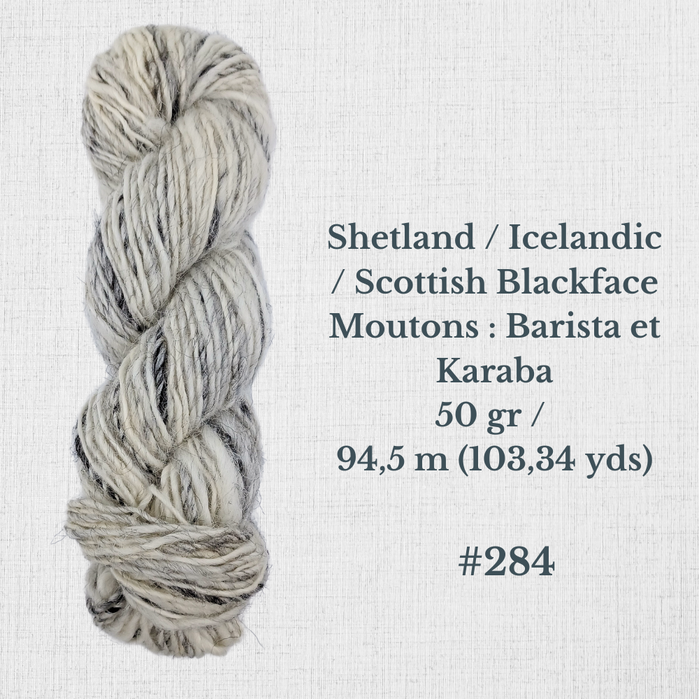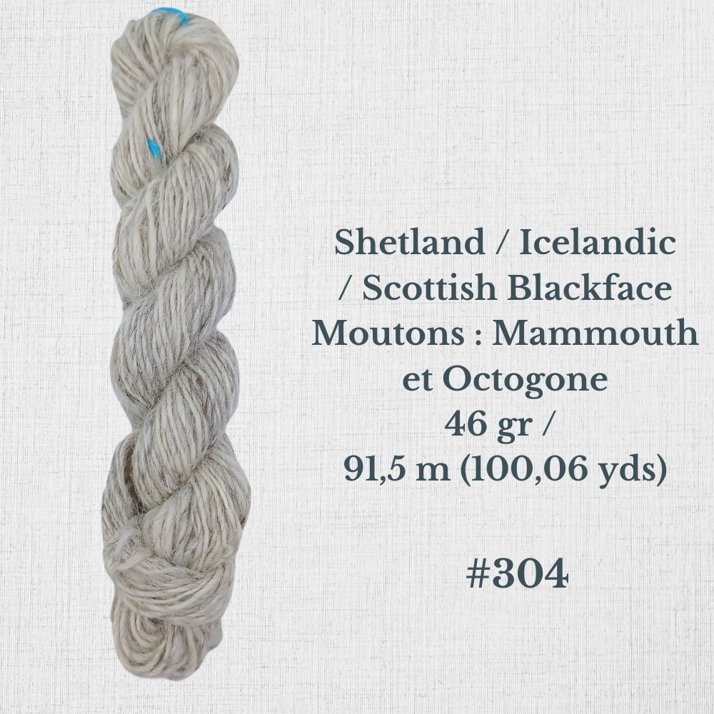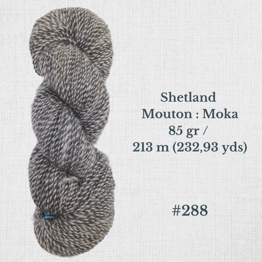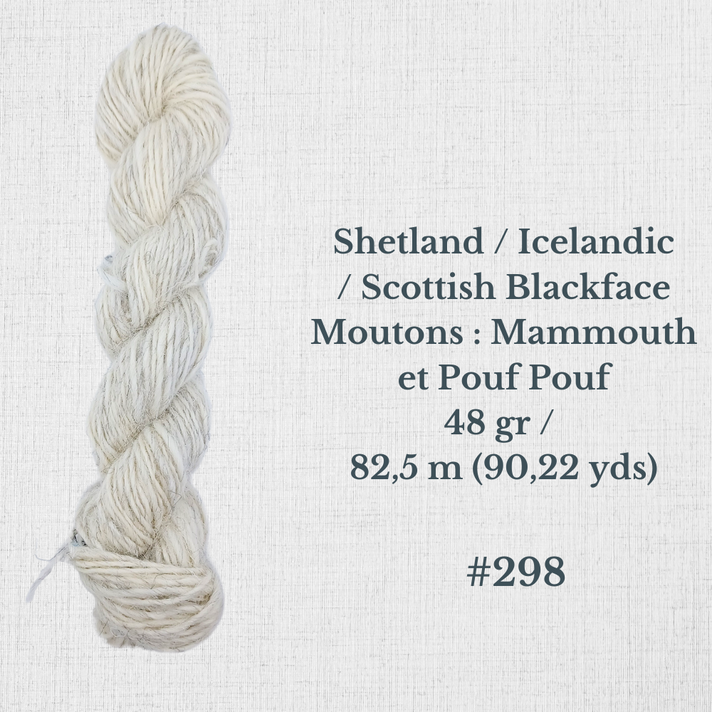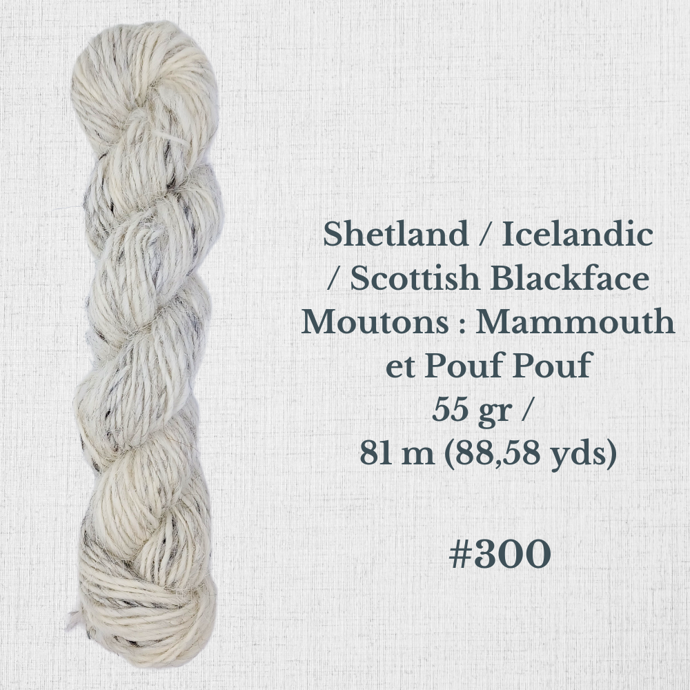 Composition : Laine Shetland, Scottish Blackface et/ou Icelandic filée à la main |
