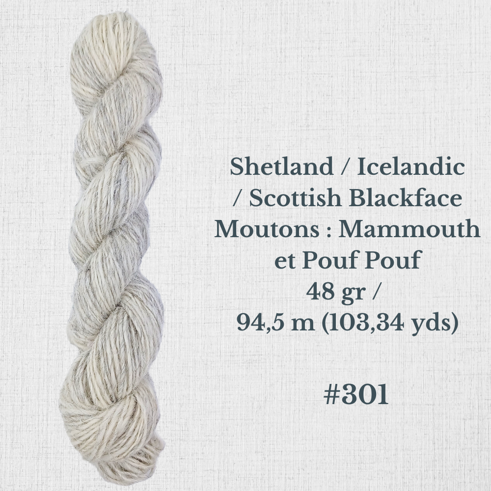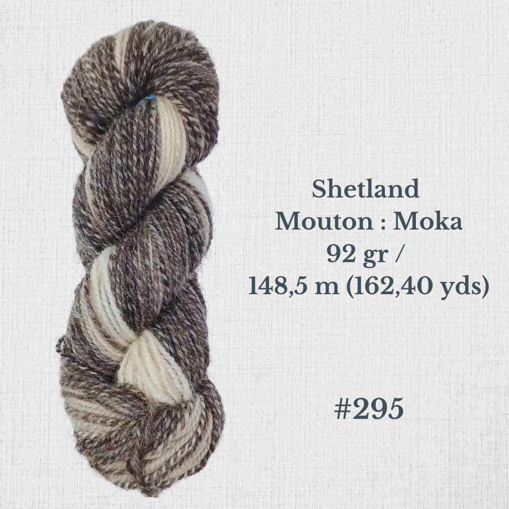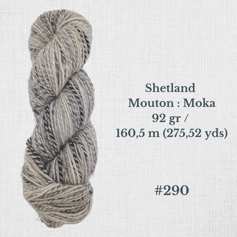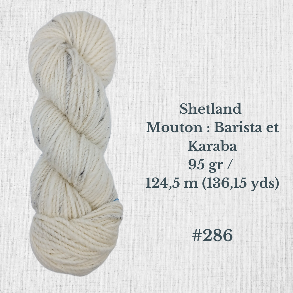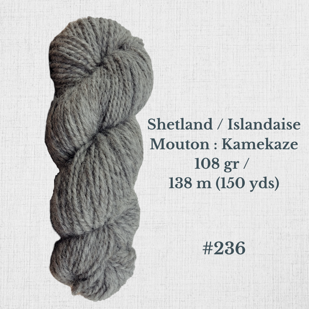 Composition : Laine Shetland, Scottish Blackface et/ou Icelandic filée à la main |