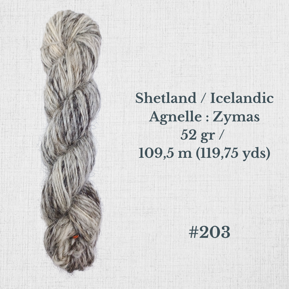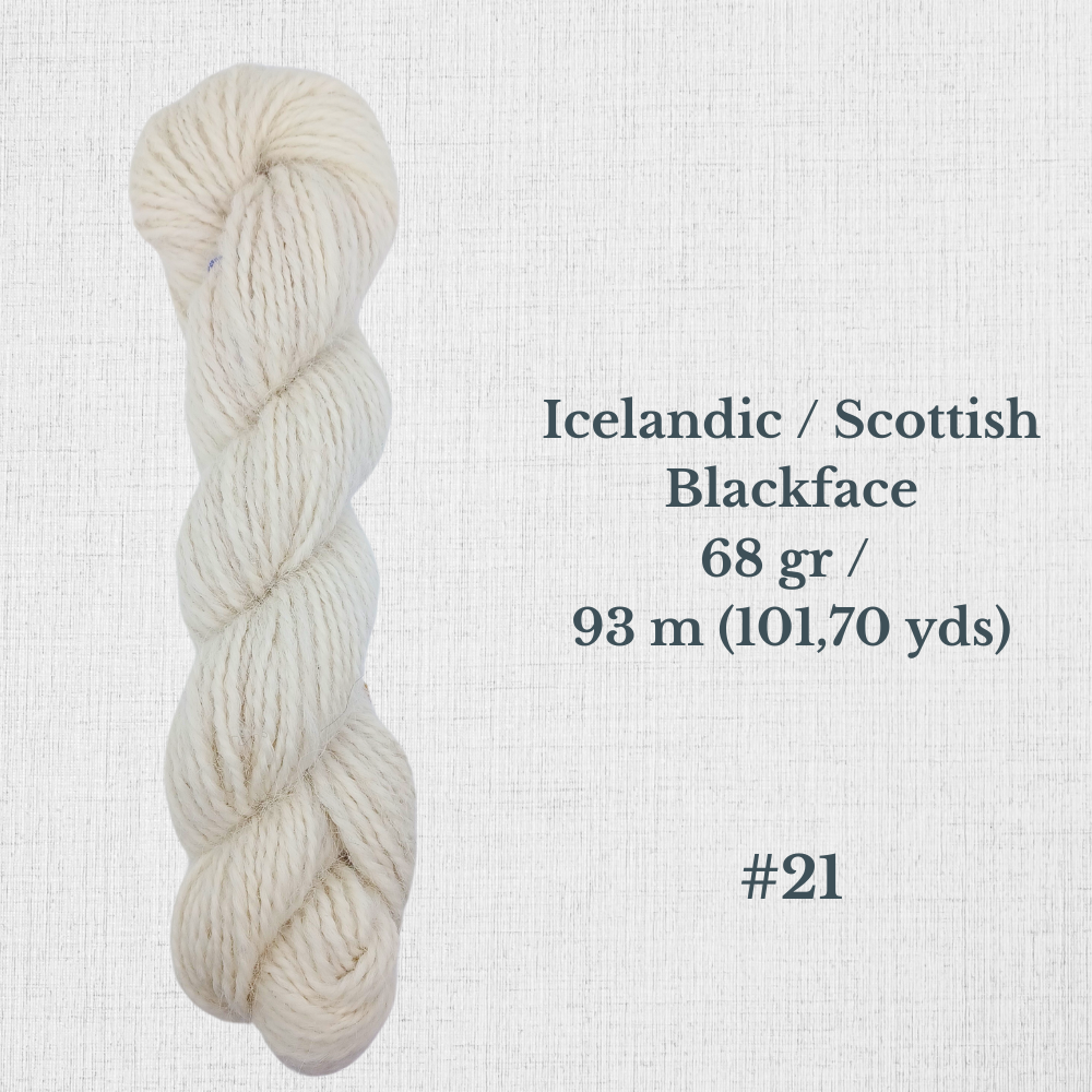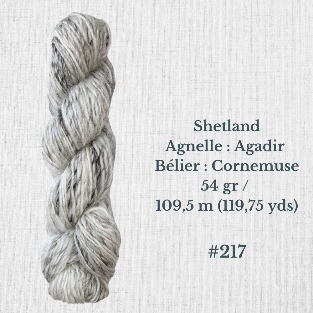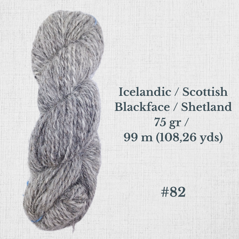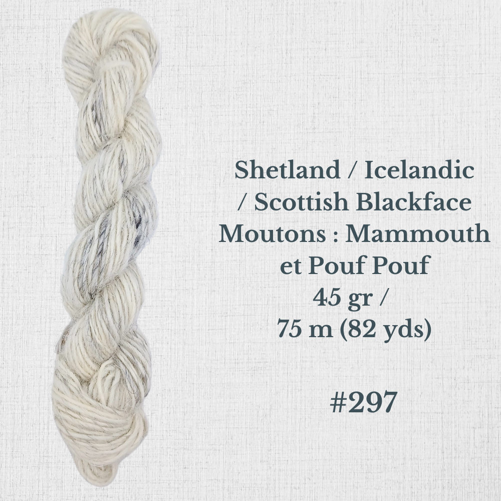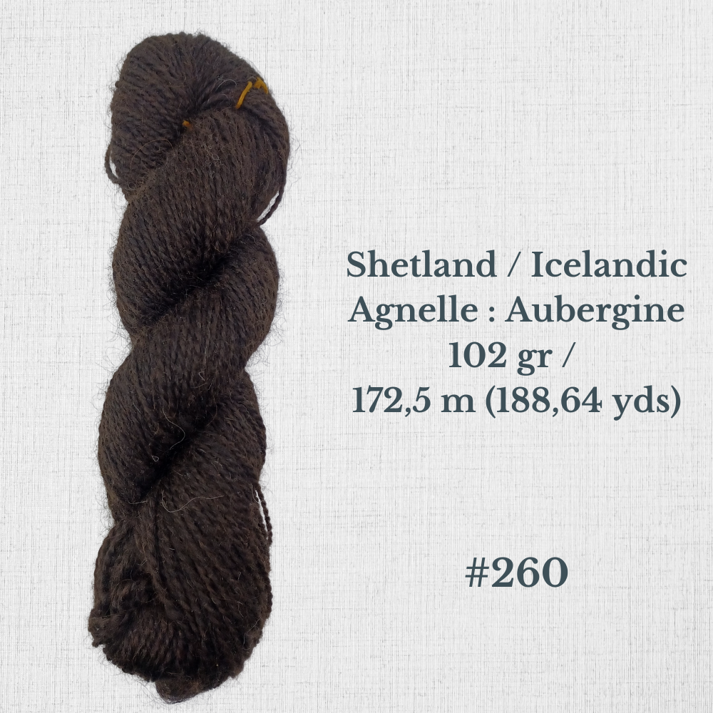 Composition : Laine Shetland, Scottish Blackface et/ou Icelandic filée à la main |