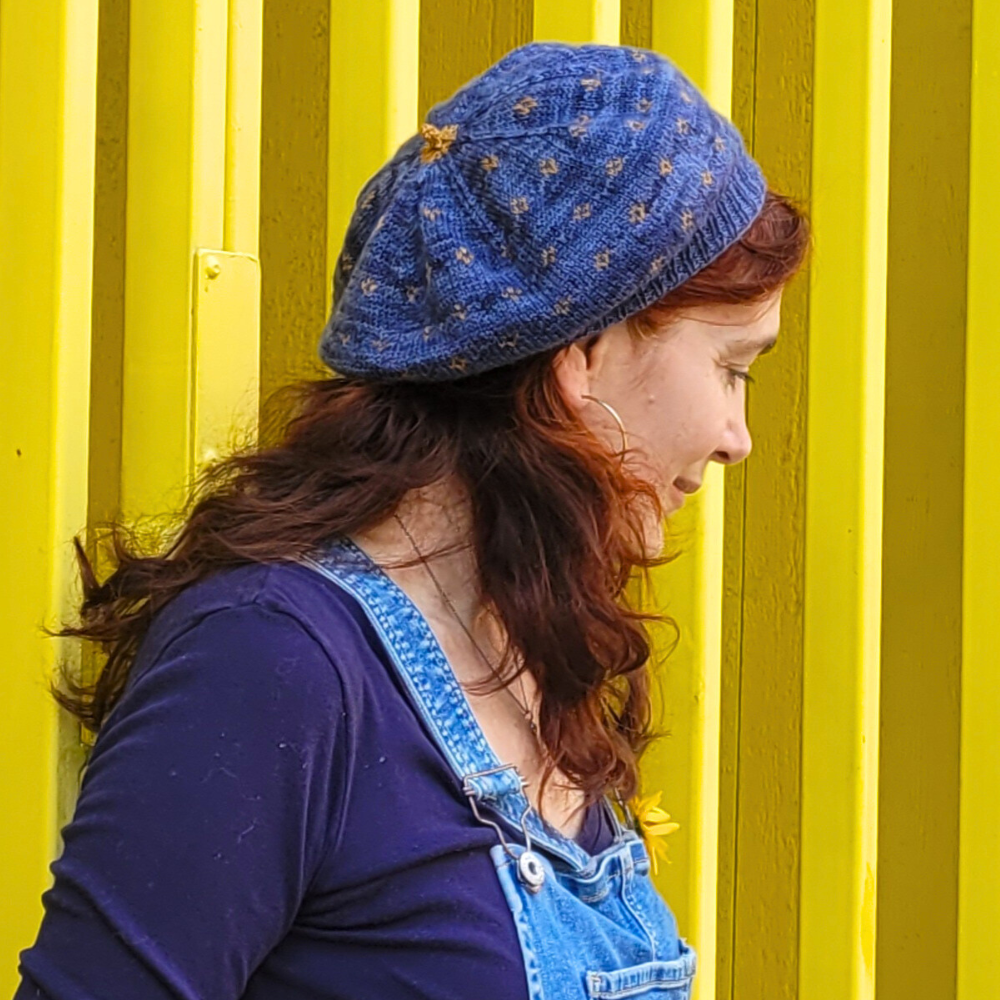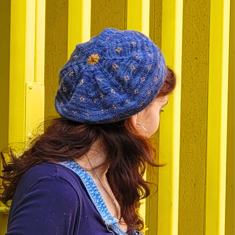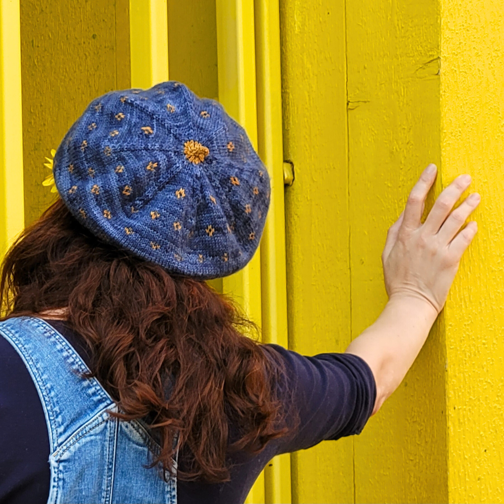 Le béret Fleurettes est tricoté en rond avec un motif de jacquard très simple. Un projet parfait pour s’initier à cette technique.