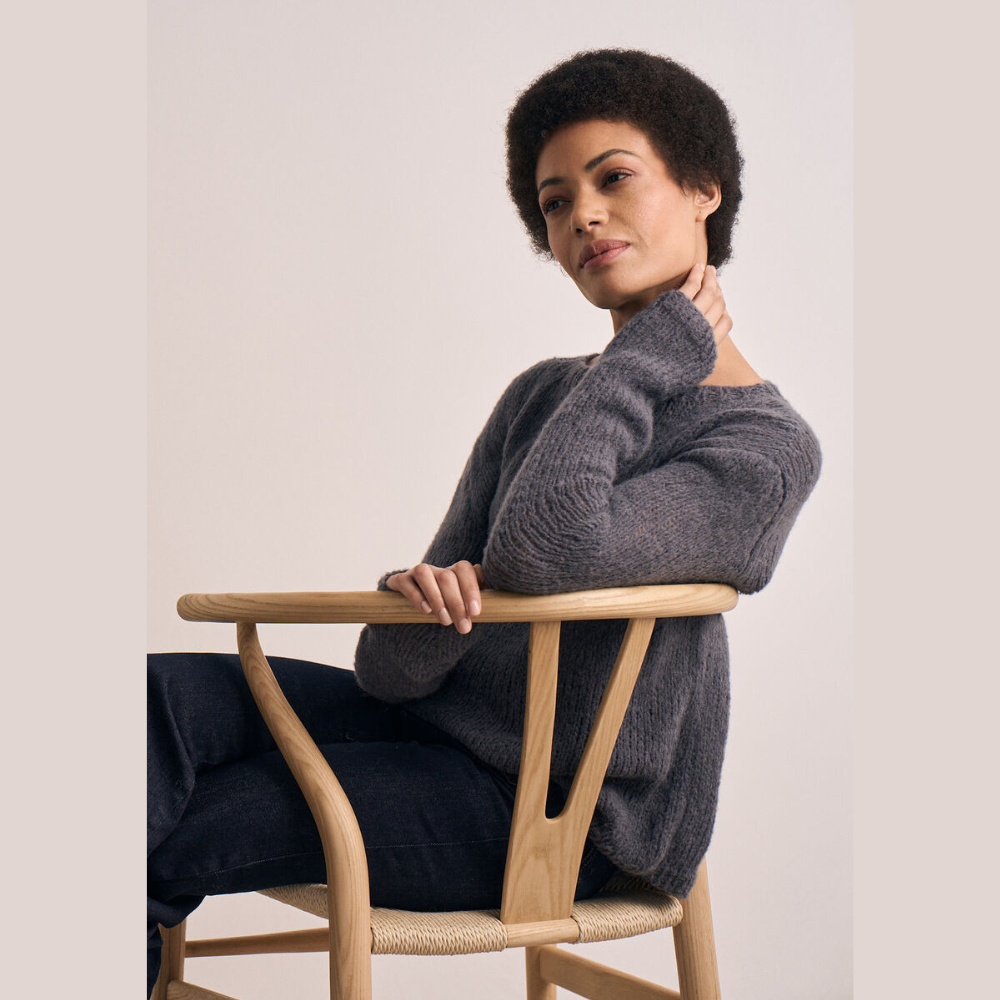 Tricoté en Alpaca Haze pour créer un tricot confortable et décontracté."