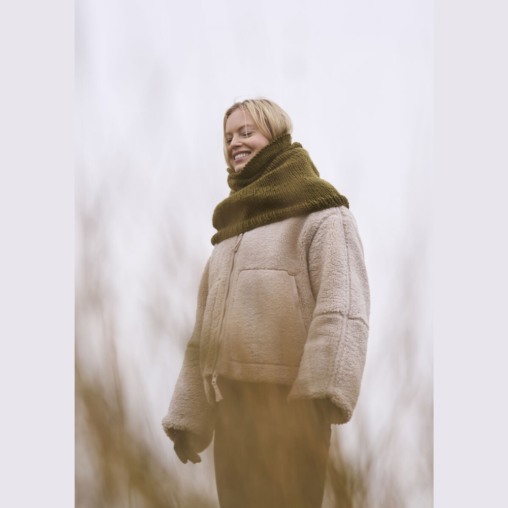 Salle est un snood merveilleusement douillet, tricoté en rond à partir du cou. Cette méthode permet des augmentations progressives à différents stades, façonnant parfaitement le snood pour une coupe confortable et élégante."