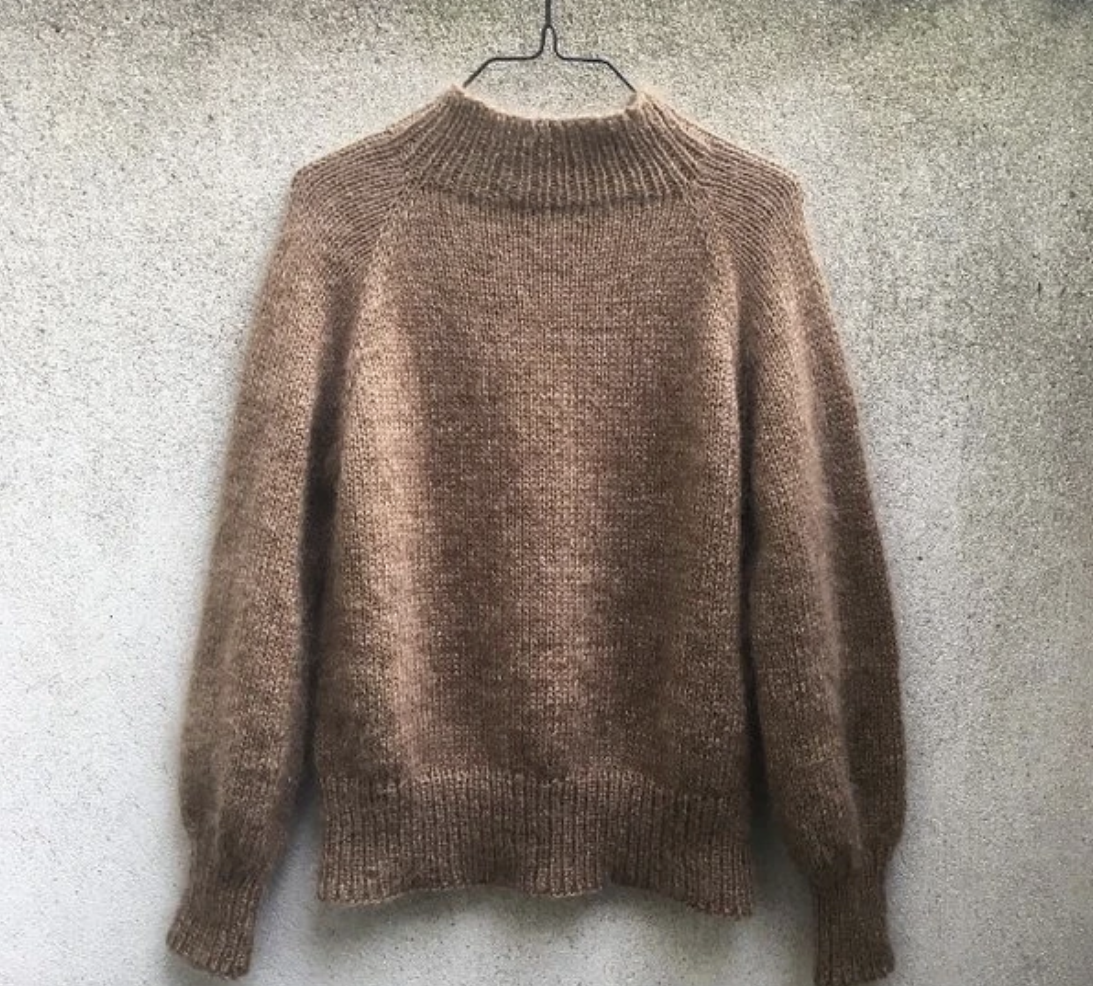 Simple and Simple Sweater is knit seamlessly in the round from the top down. You begin from the neck, and work the yoke with raglan increases. Sleeve stitches are then put on hold, and the body is completed. Lastly, you work one sleeve at a time in the round, from the held stitches down to the cuff. Simple and Simple Sweater has a classic, relaxed silhouette, with a high and close-fitting ribbed neckline, and deep, ribbed edges. Designed to hit the body at hip height, the length of the sweater can be easily modified to fit lower or higher on the body by working additional or fewer rounds before starting the ribbed edges.